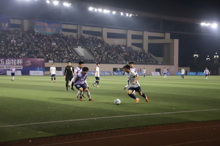 心学修文队对阵清镇山花牛奶队。罗毅摄开赛仪式结束后,本届赛事揭幕战正式打响,由心学修文队对阵清镇山花牛奶队。随着清脆的开赛哨声,双方球员迅速进入状态,奋勇拼搏,每一次精彩攻防都引来现场观众的阵阵欢呼。中场休息期间,贵阳市青少年足球汇演精彩上演,充分展示了贵阳青少年足球发展的活力与潜力。